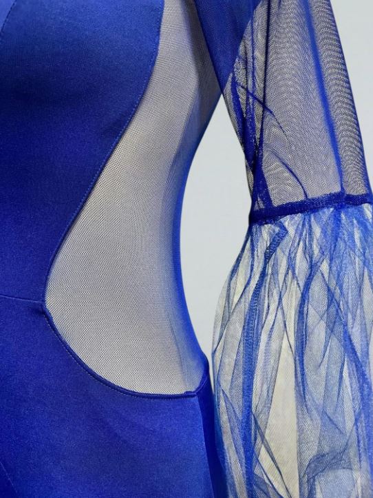 Юбка с клиньями из шифона добавит Вашему образу объем, легкость и динамику в танце. Спортивное бальное платье выполнено из высококачественной эластичной ткани, которая легко стирается, не мнется и быстро сохнет. Интересным решением модели является декор в виде объемных рукавов-фонариков выполненных из фатина с узкой манжетой, которые придают образу пышности и легкости. Без застежки. Чашечки вшиты. Трусы вшиты. Внутренний регилин.